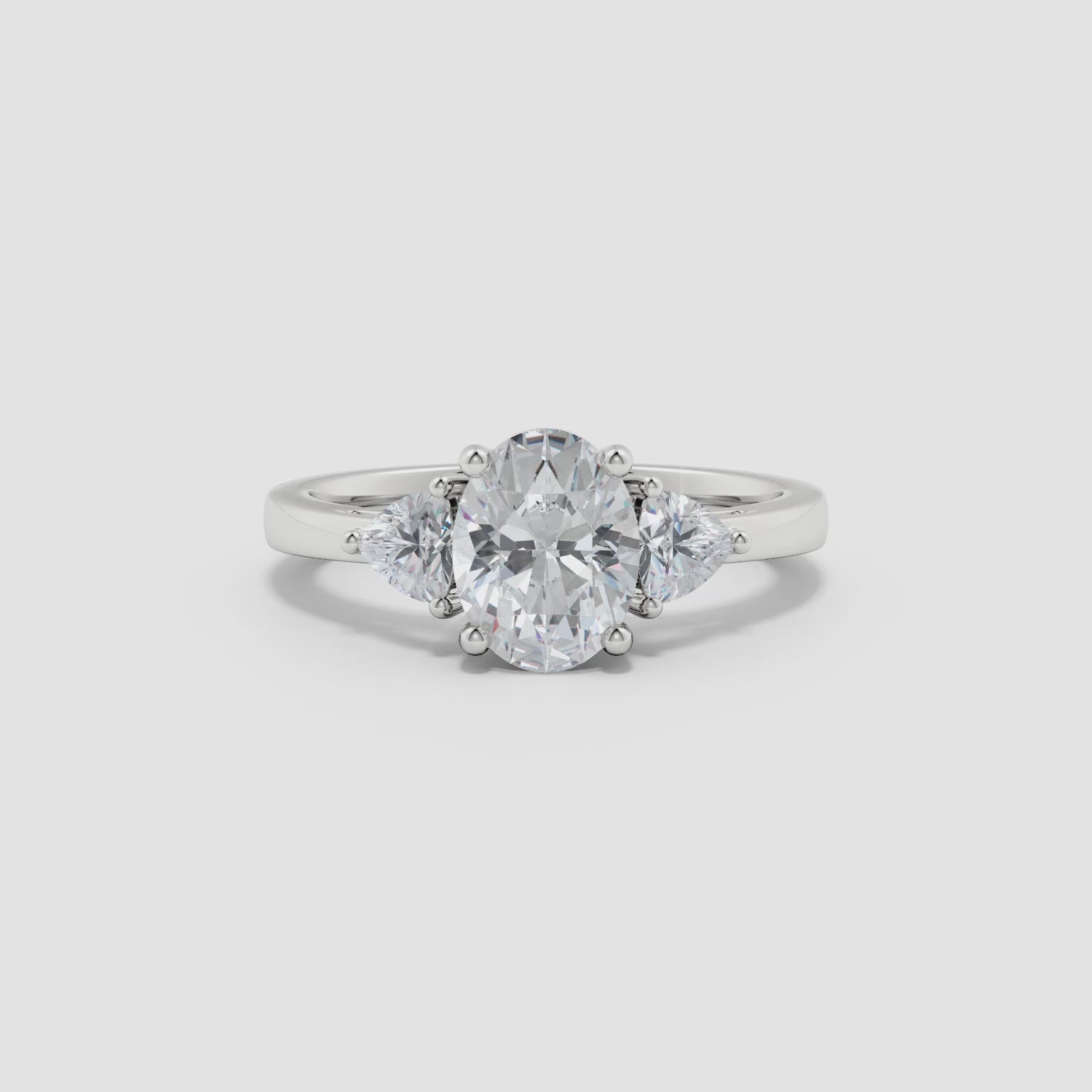 Oval and Trillion Diamond Three Stone Reverse Tapered Shank Engagement Ring, Lab-Grown