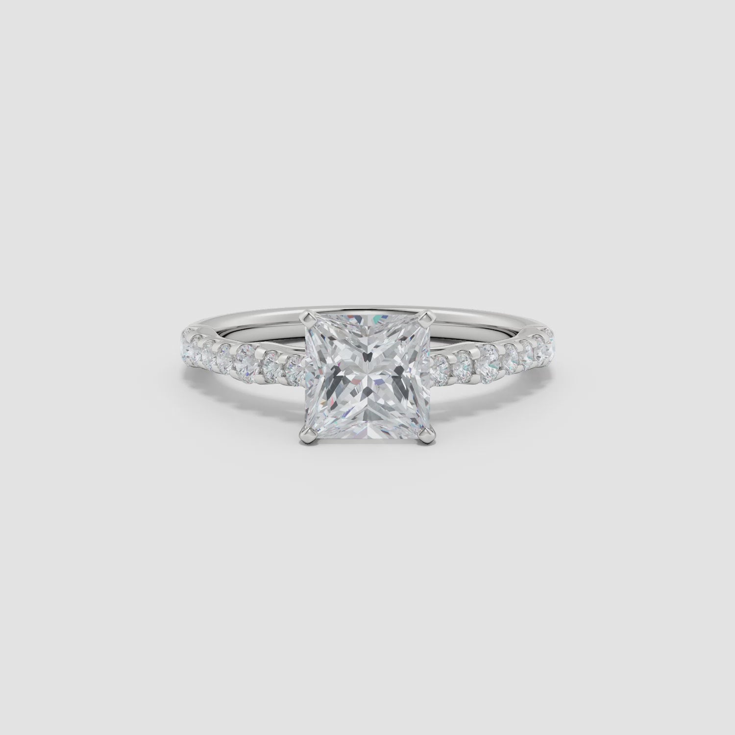 Lab-Grown Solitaire Princess-Cut Diamond Station Engagement Ring