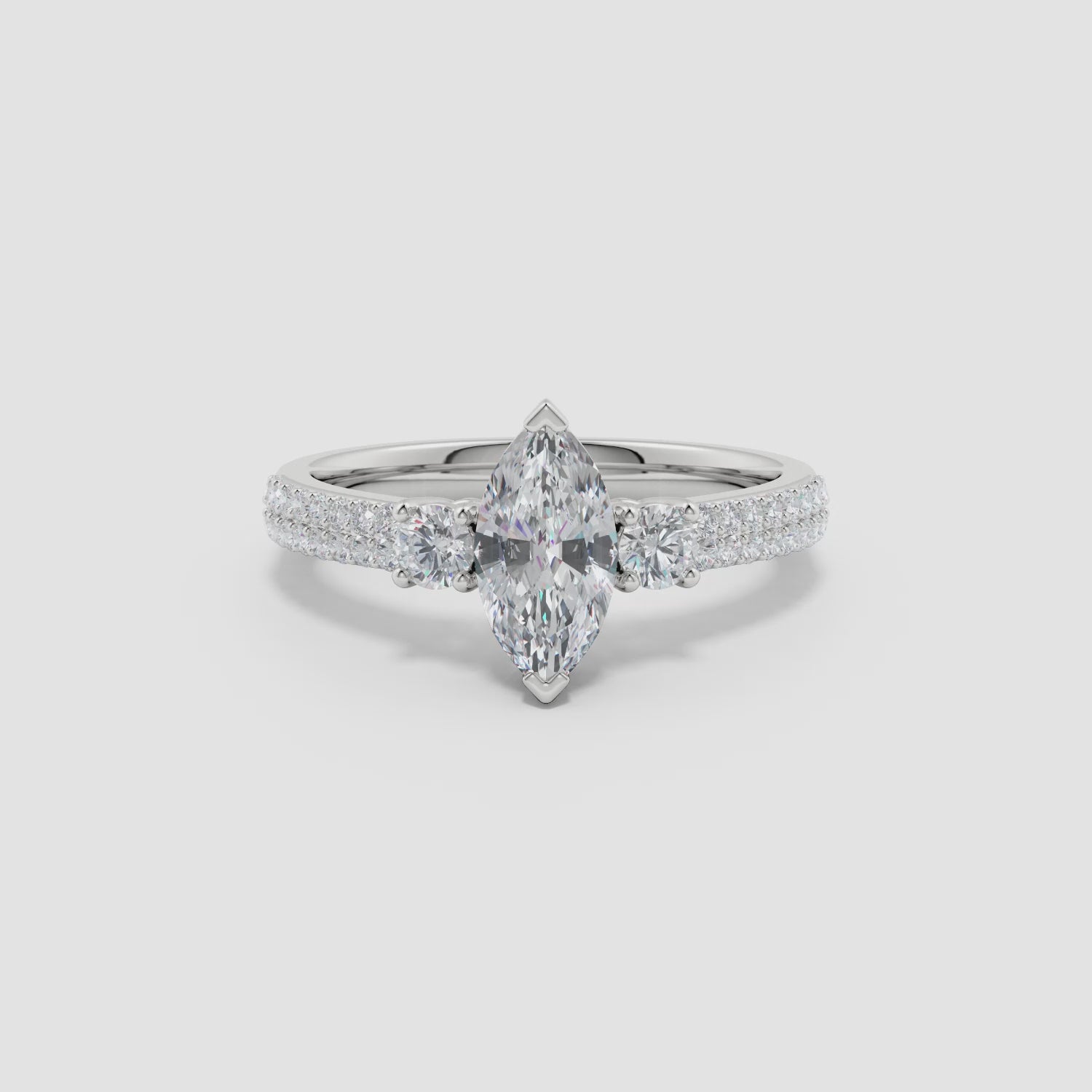 Marquise Diamond Side Stone Knife-Edge Shank Engagement Ring, Lab-Grown