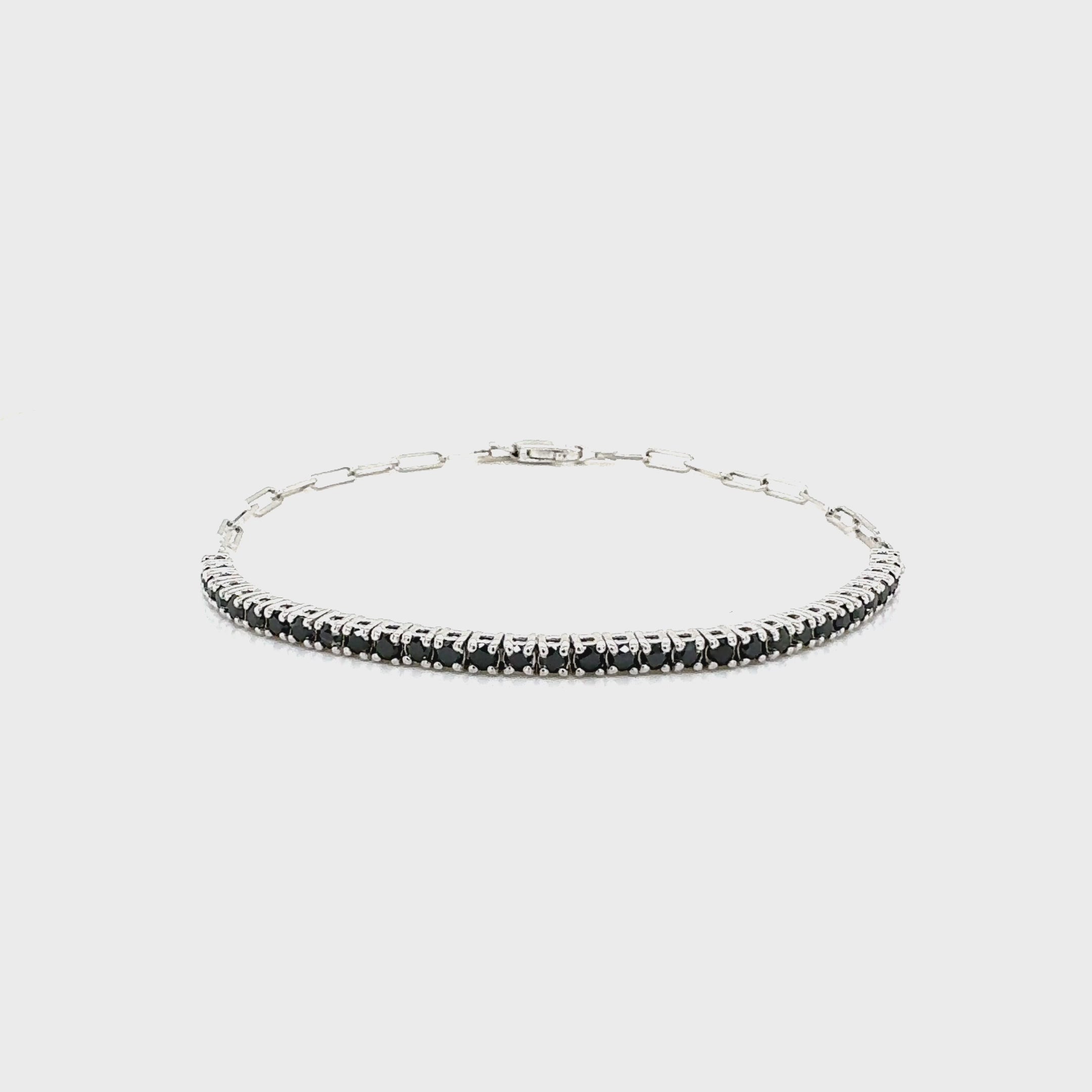 Black Round Diamond Paper Clip Bracelet, 1.0 ct., 14K White Gold, Lab Grown
