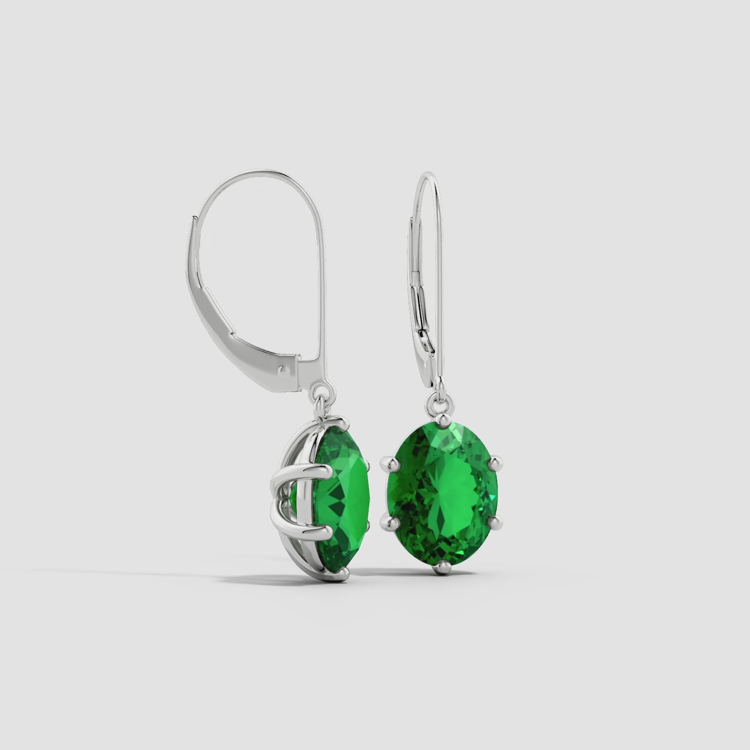 Emerald Oval Leverback Drop Earrings, 14K Gold