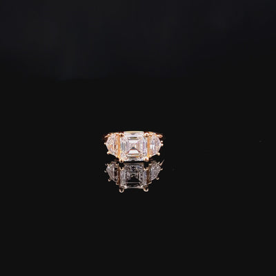 Unveil exceptional radiance with this Lab-Grown Diamond Three Stone Ring, meticulously designed in 14K Yellow Gold. Featuring a stunning 4.02 carats of Asscher/Cadillac-cut lab-grown diamonds, each stone showcases D color and VVS2 clarity, offering unmatched brilliance and ethical beauty.