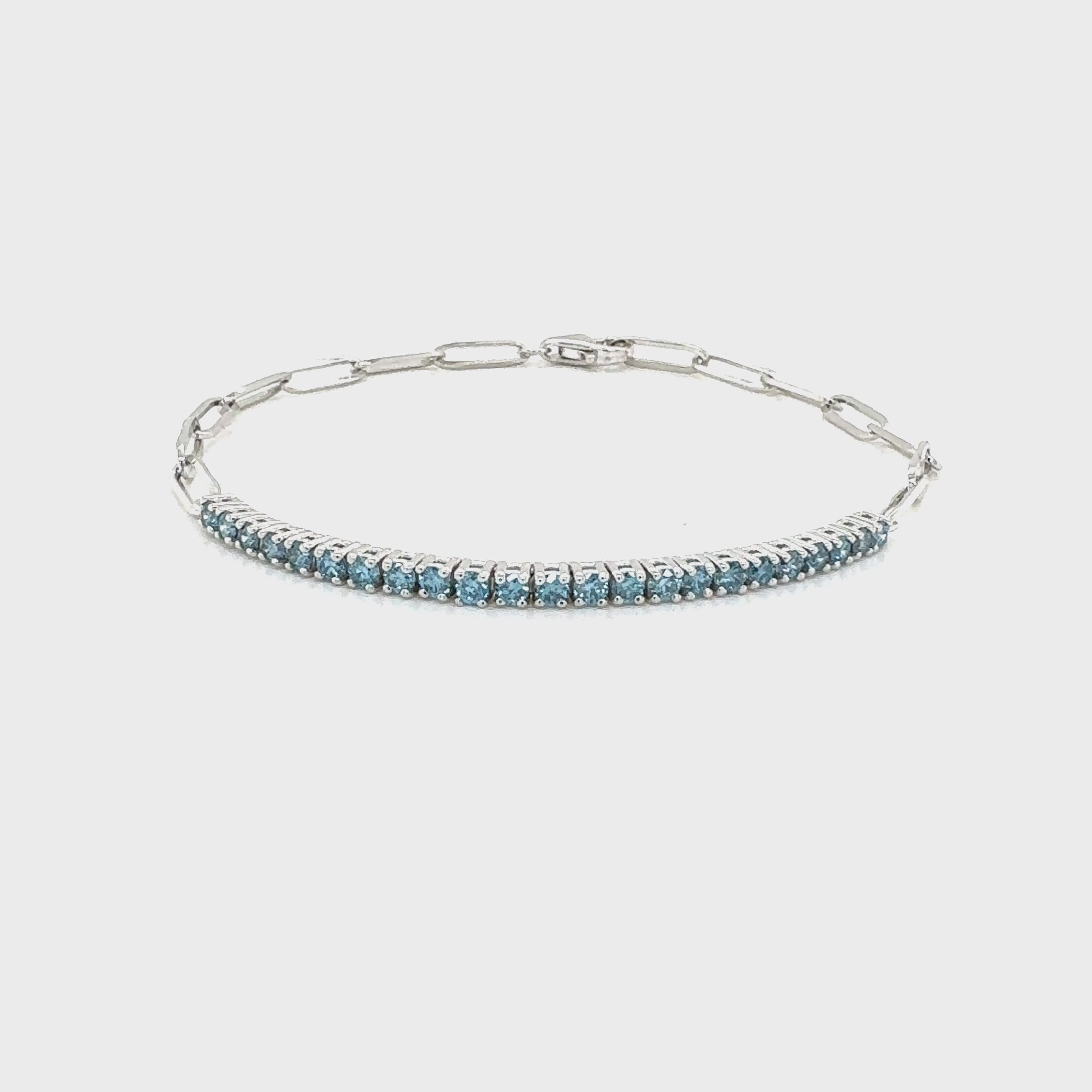 Blue Round Diamond Paper Clip Bracelet, 0.85 ct., 14K White Gold, Lab Grown