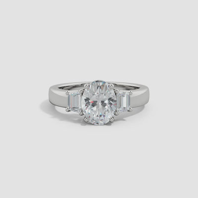 Three Stone Classic Oval and Trapezoid Diamond Engagement Ring