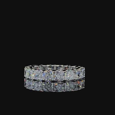 Celebrate everlasting brilliance with this Lab-Grown Cushion Cut Diamond Eternity Band, elegantly crafted in 14K White Gold. This breathtaking ring features a continuous row of lab-grown cushion-cut diamonds totaling 5.58 carats, radiating unmatched fire and sophistication. Each diamond is hand-selected for its E-F color and VS clarity, ensuring exceptional sparkle and purity that encircle the finger in timeless elegance.