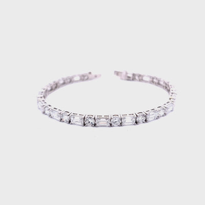 Emerald-Cut and Round Diamond Tennis Bracelet, 16.26 ct., 14K White Gold, Lab Grown