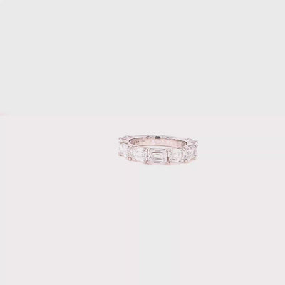 Designed in a half-way eternity style, this ring delivers brilliance across the top of the band while maintaining everyday comfort and versatility. The sleek, step-cut facets of emerald diamonds reflect light with mesmerizing depth, beautifully complemented by the luminous white gold setting.