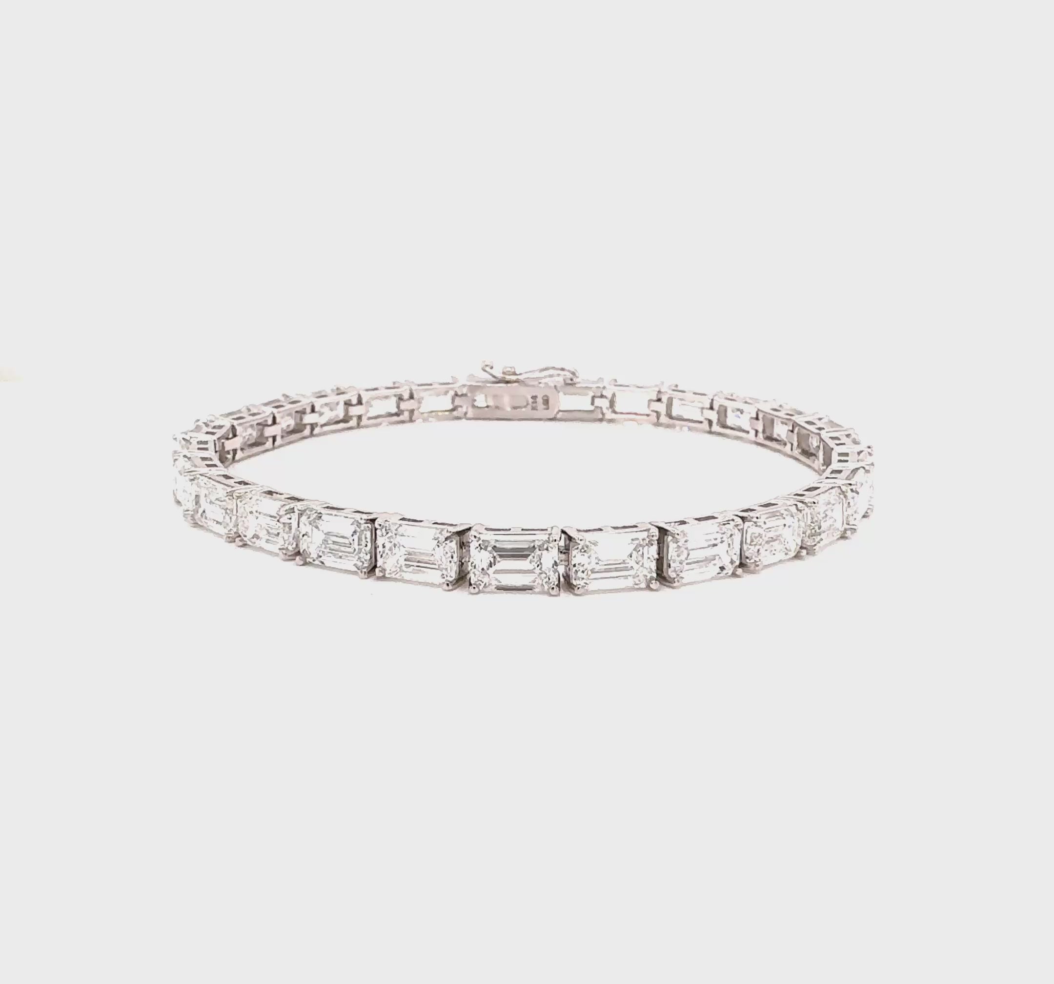 Emerald-Cut Diamond Tennis Bracelet, 17.93 ct., 14K White Gold, Lab Grown