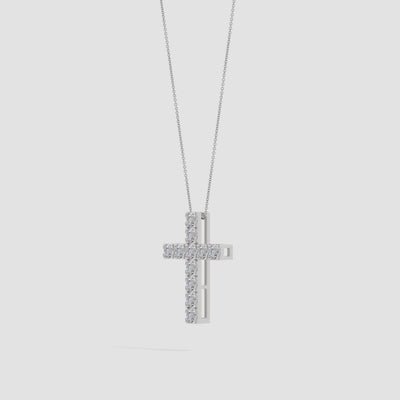 Elegant and meaningful, this flat prong-set diamond cross pendant redefines timeless symbolism with a touch of contemporary style. Featuring a sleek cross encrusted with dazzling lab-grown diamonds, each stone is securely held in refined prong settings that enhance the design’s brilliance and structure. Expertly crafted in luxurious 14K Gold, this pendant is a radiant expression of faith, ideal for every occasion and moment of reflection.
