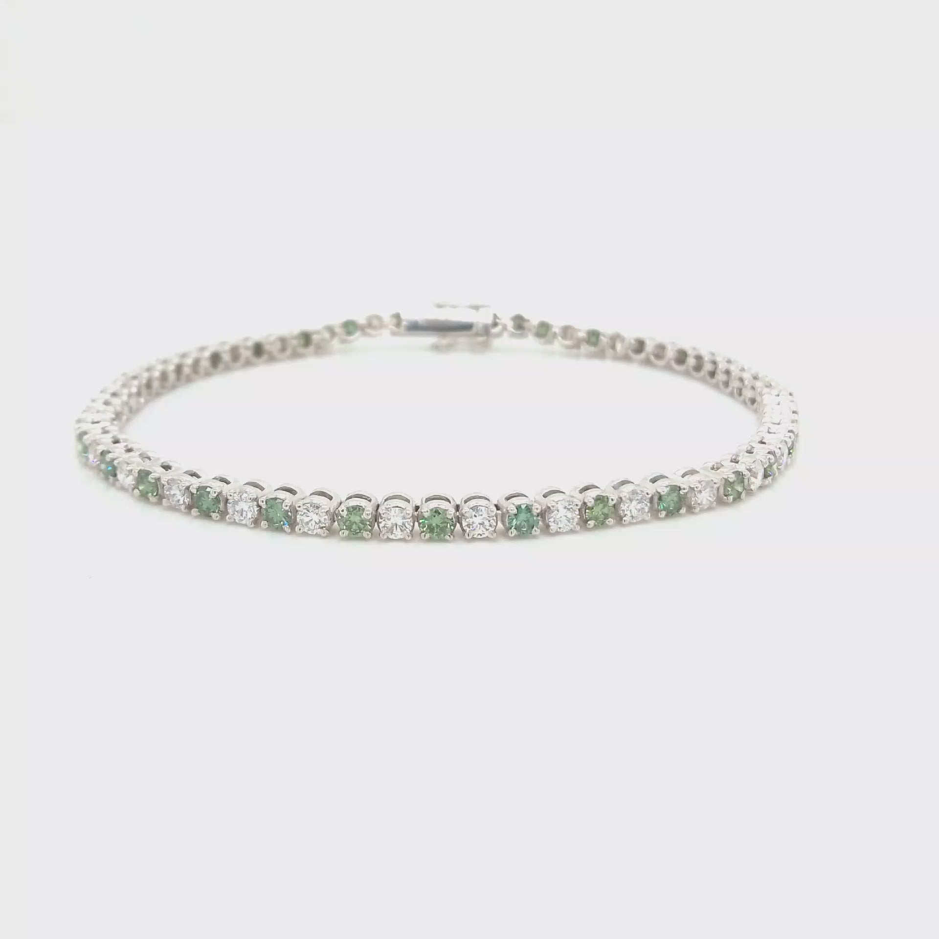 Green Round Diamond Tennis Bracelet, 2.74 ct., 14K White Gold, Lab Grown