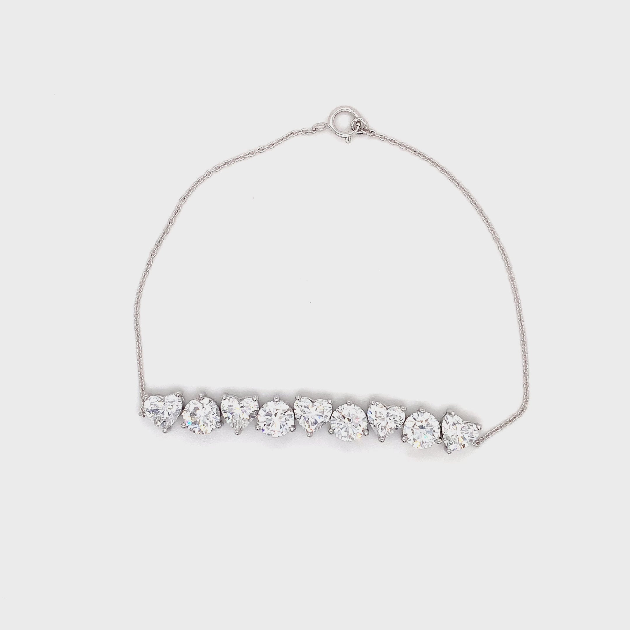 Heart Shape and Round Diamond Bracelet, 4.78 ct., 14K White Gold, Lab Grown