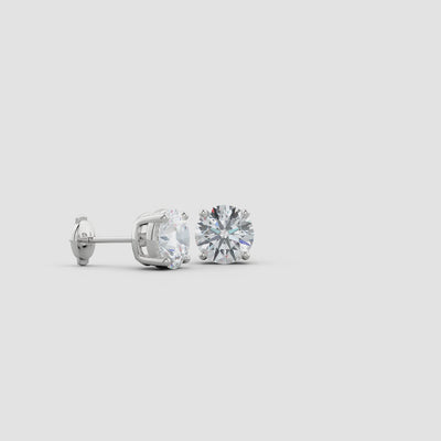 Solitaire Basket-Set Round Diamond Stud Earrings