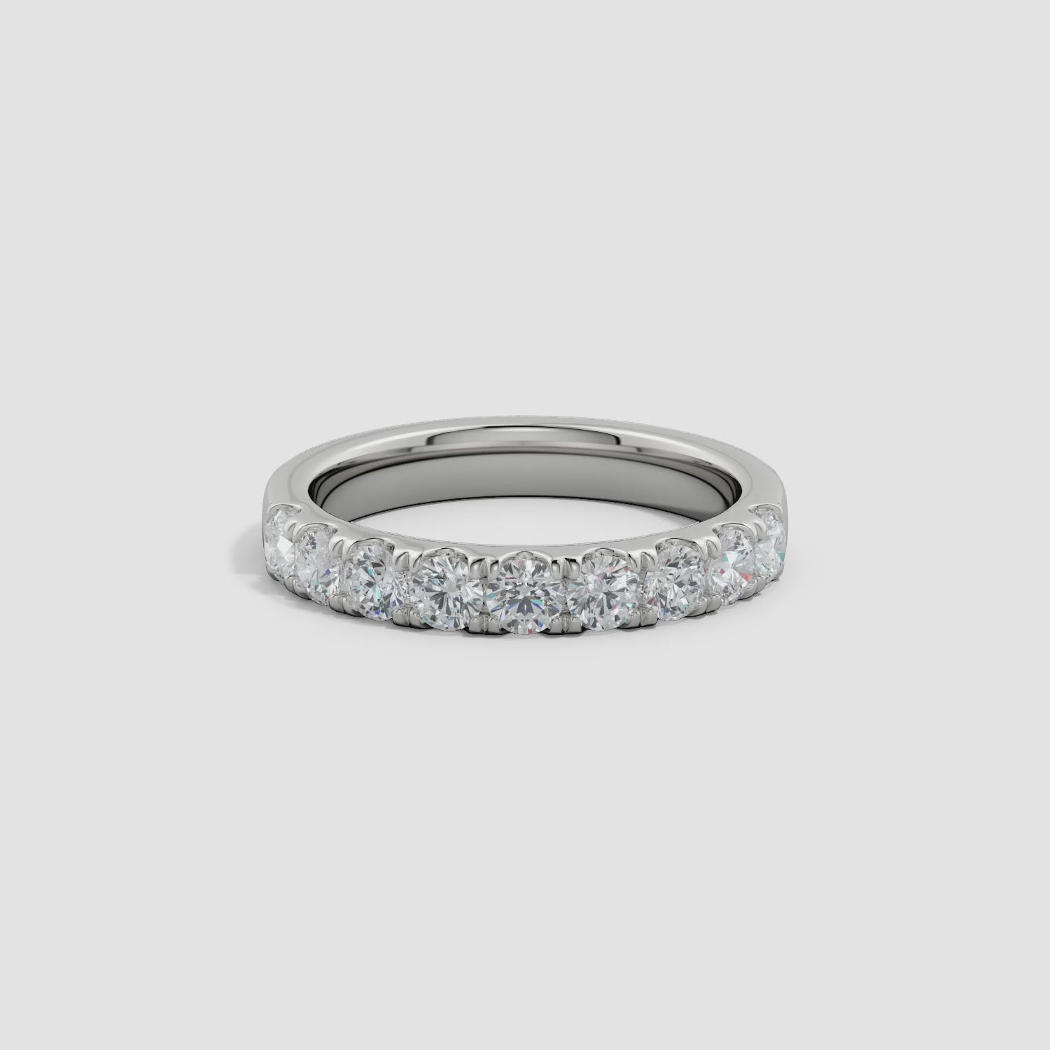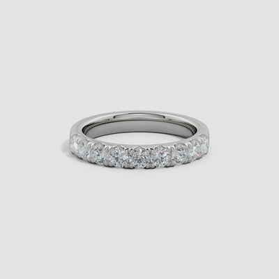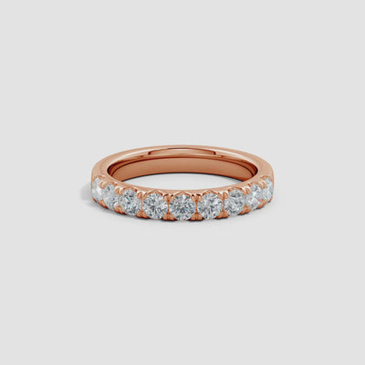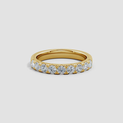 This exquisite half eternity wedding ring radiates timeless beauty and sophistication. Adorned with brilliant round lab-grown diamonds in a secure split prong setting, it captures light from every angle for a mesmerizing sparkle. Expertly crafted in luxurious 14K Gold, this elegant ring is perfect as a wedding band or a stunning complement to your engagement ring—an enduring symbol of love and refinement.