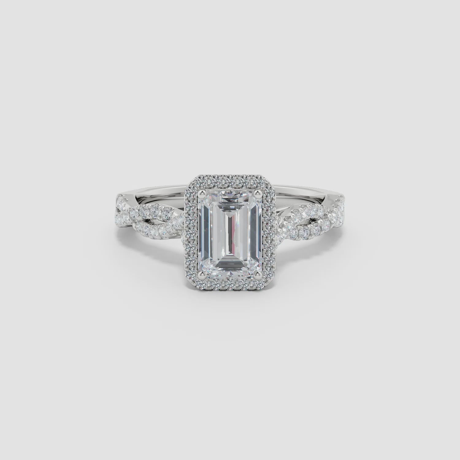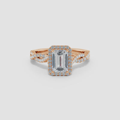 Emerald-Cut Diamond Twisted Shank Halo Engagement Ring