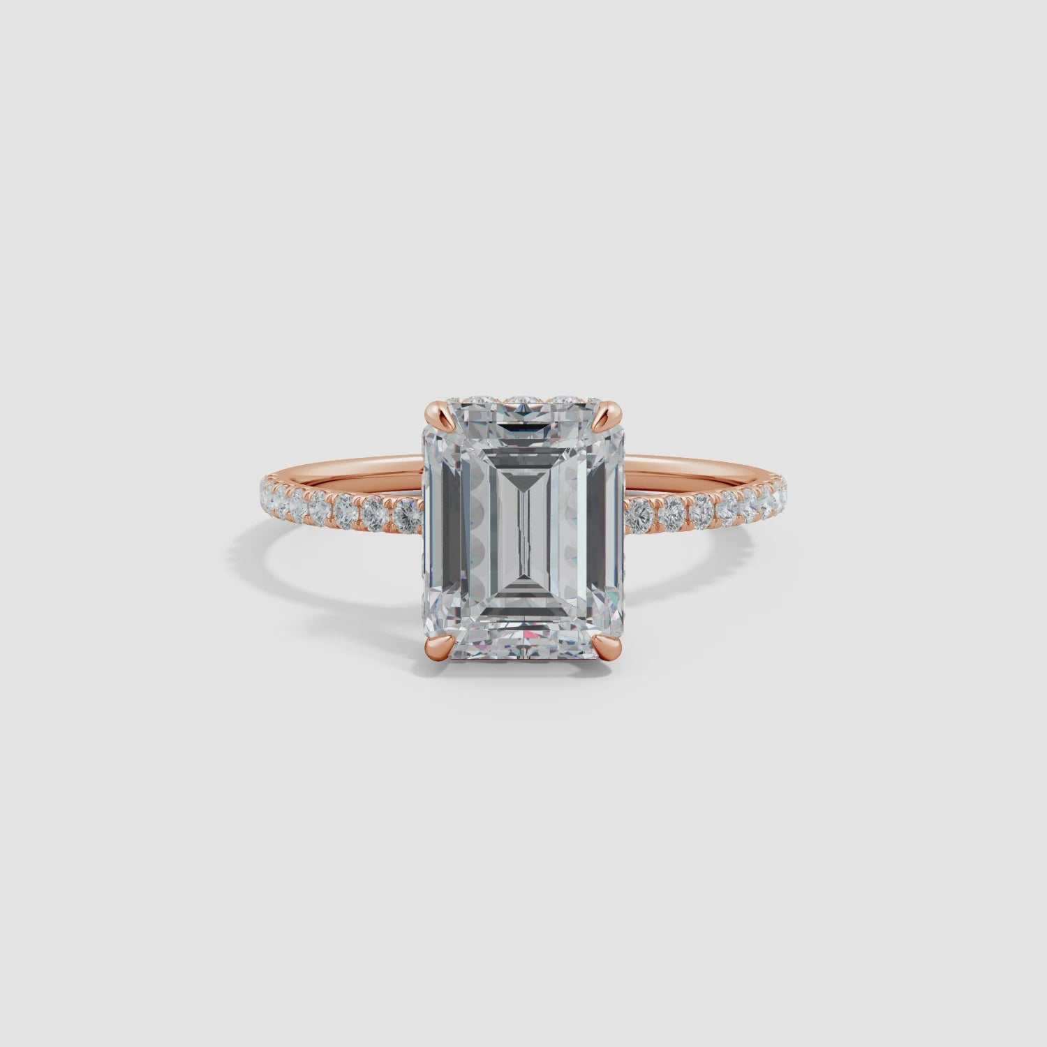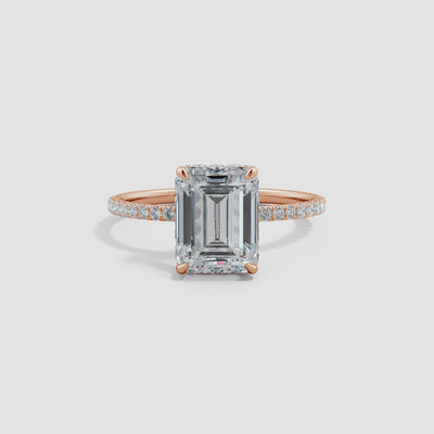 Emerald-Cut Diamond Hidden Halo Classic Engagement Ring