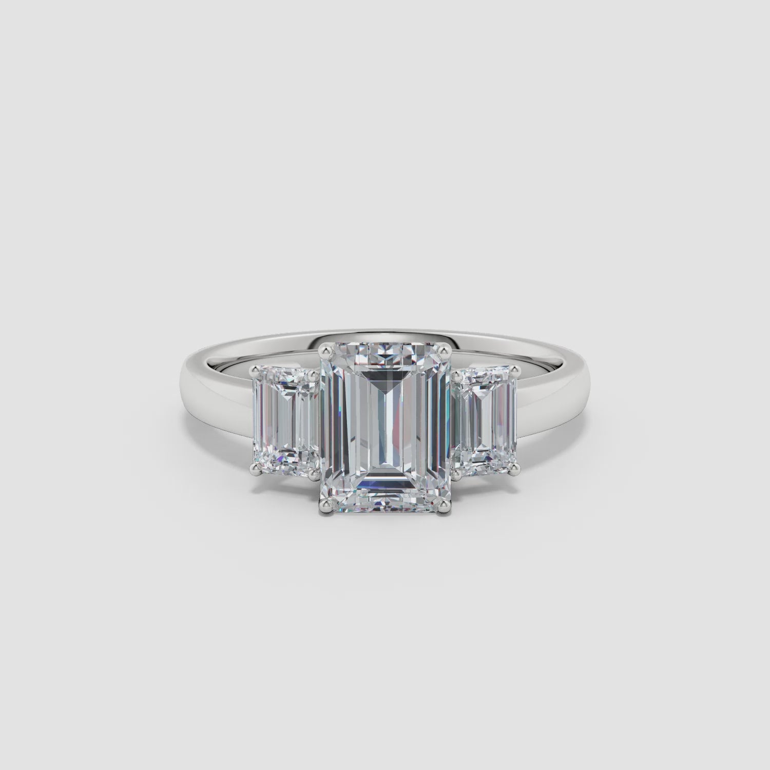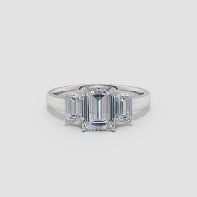 Emerald-Cut Diamond Three Stone Engagement Ring
