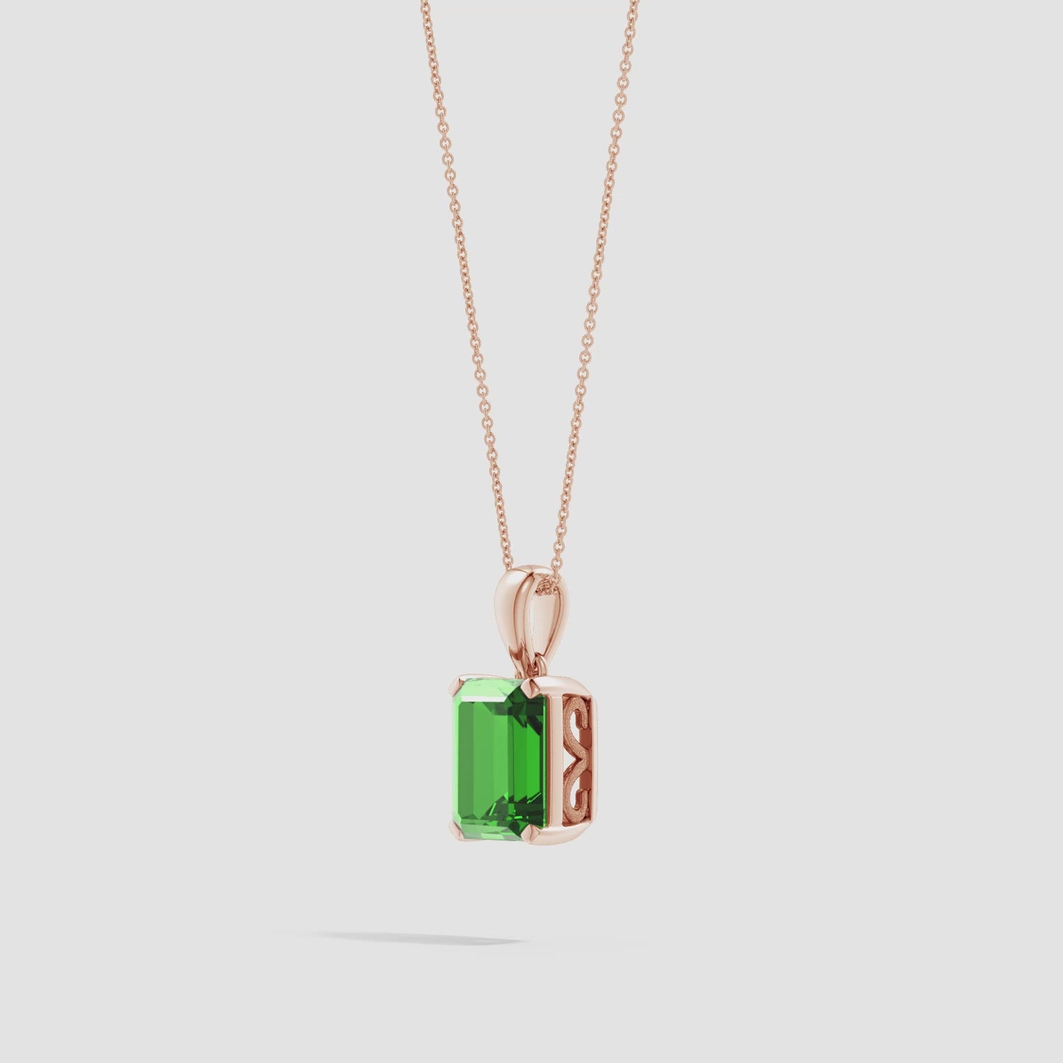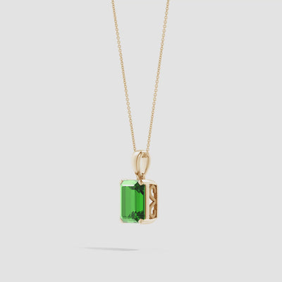 Elegant and timeless, this emerald-cut lab-grown gemstone pendant radiates understated sophistication. The clean lines of the solitaire gemstone are accentuated by a classic four-prong setting, allowing its brilliance and shape to take center stage. Gracefully suspended from a simple bale and paired with a traditional cable chain, this pendant is expertly crafted in luxurious 14K Gold—a beautiful blend of simplicity and modern style, perfect for everyday elegance or special occasions.