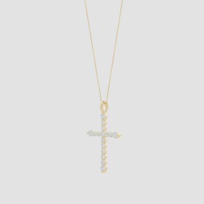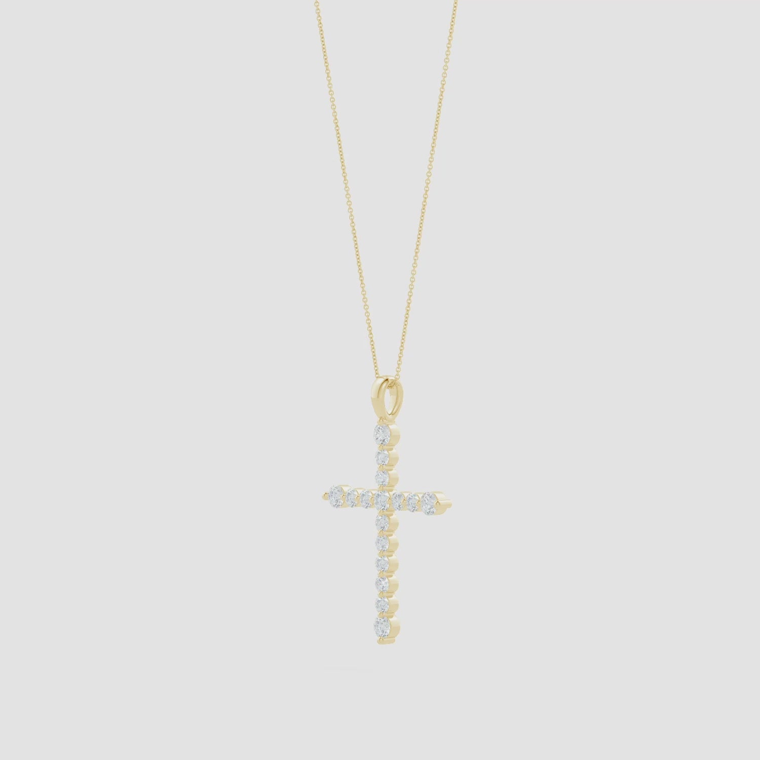 Elegant and meaningful, this cross pendant features a contemporary dotted design set with sparkling round lab-grown diamonds. The floating layout of each stone adds brilliance and a touch of modern flair to the classic cross silhouette. Expertly crafted in timeless 14K Gold, this pendant is a stunning symbol of faith and style for everyday wear or special occasions.