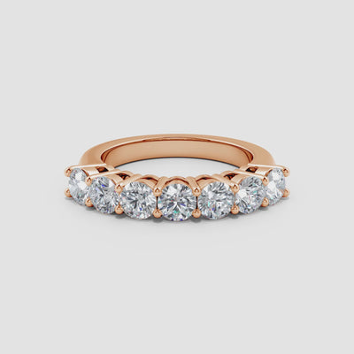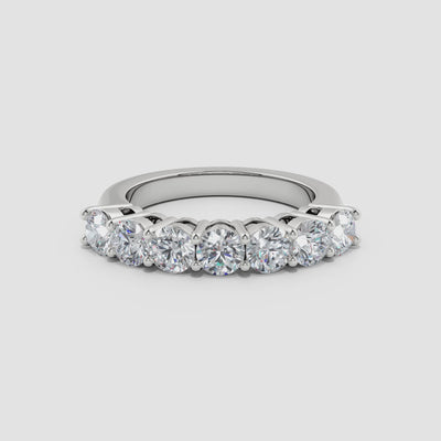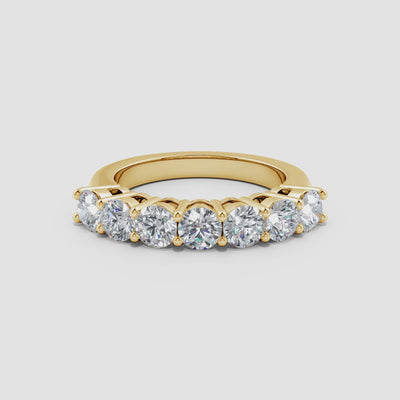 This exquisite seven-stone wedding ring radiates timeless beauty and brilliance. Expertly crafted with prong-set lab-grown diamonds, it features a refined semi eternity design that symbolizes everlasting love. Each round diamond is precisely positioned to enhance its sparkle and create a captivating display of light. Made in luxurious 14K Gold, this elegant band is a classic statement of grace and sophistication—perfect for both daily wear and special occasions.