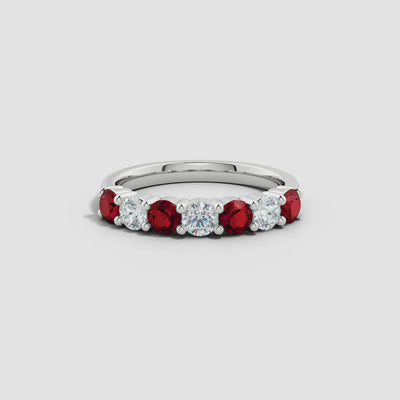 Half Eternity Seven Stone Ruby and Lab-Grown Diamond Wedding Ring