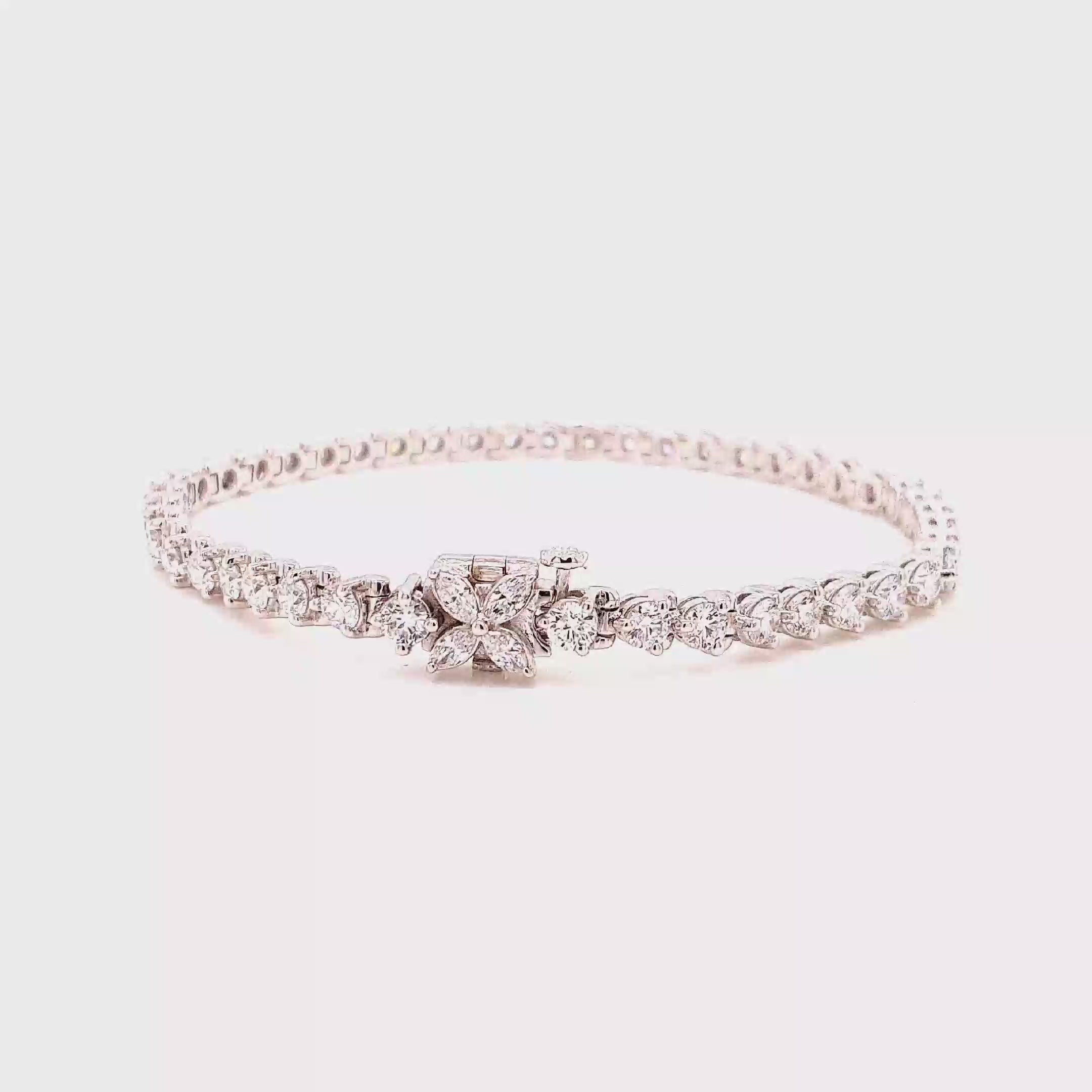 Elevate your elegance with this dazzling Lab-Grown Diamond Tennis Bracelet, gracefully handcrafted in 14K White Gold. Featuring a total of 4.56 carats of marquise and round-cut lab-grown diamonds, this bracelet perfectly blends classic brilliance with modern artistry. Each diamond, meticulously graded for E-F color and VS2 clarity, exudes stunning sparkle, symmetry, and radiance — a true celebration of sustainable luxury.