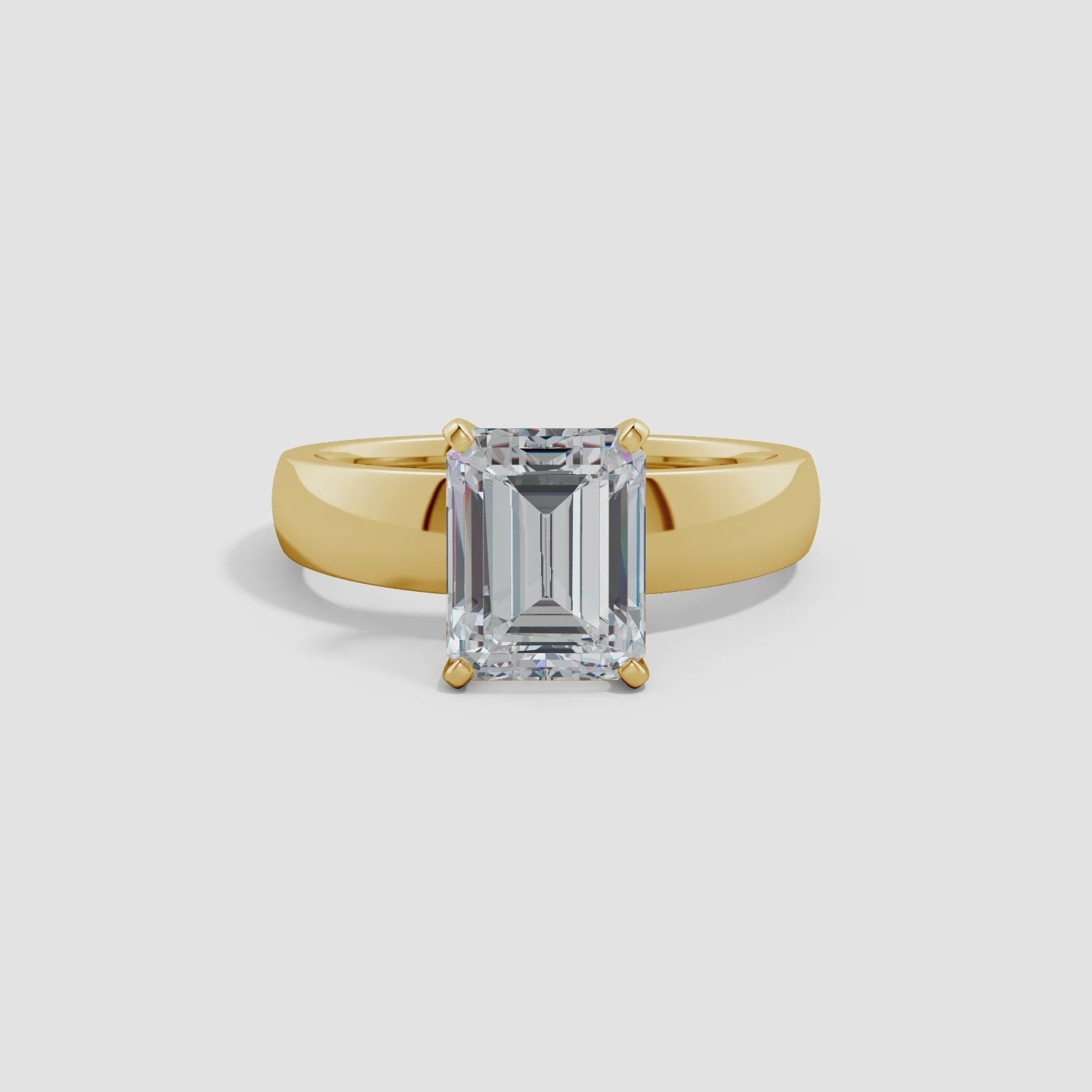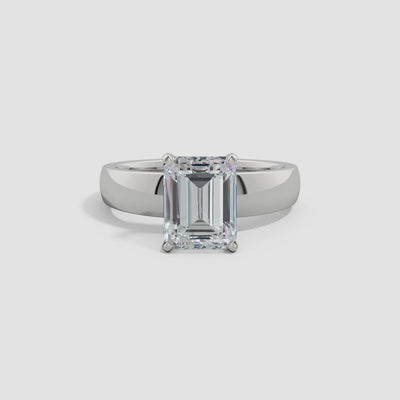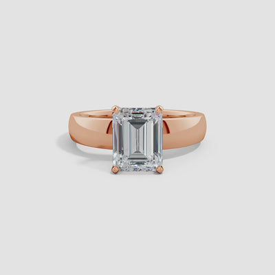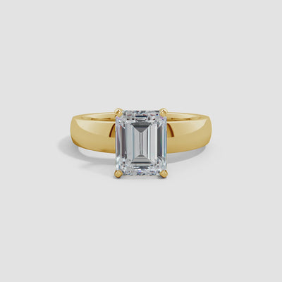 Elegant in its simplicity, this refined solitaire engagement ring places the spotlight on a breathtaking emerald-cut lab-grown diamond. The center stone is securely prong set on a graceful polished shank, allowing its clean lines and captivating sparkle to shine through with sophistication. Expertly crafted in timeless 14K Gold, this ring is a perfect expression of classic beauty and enduring love.