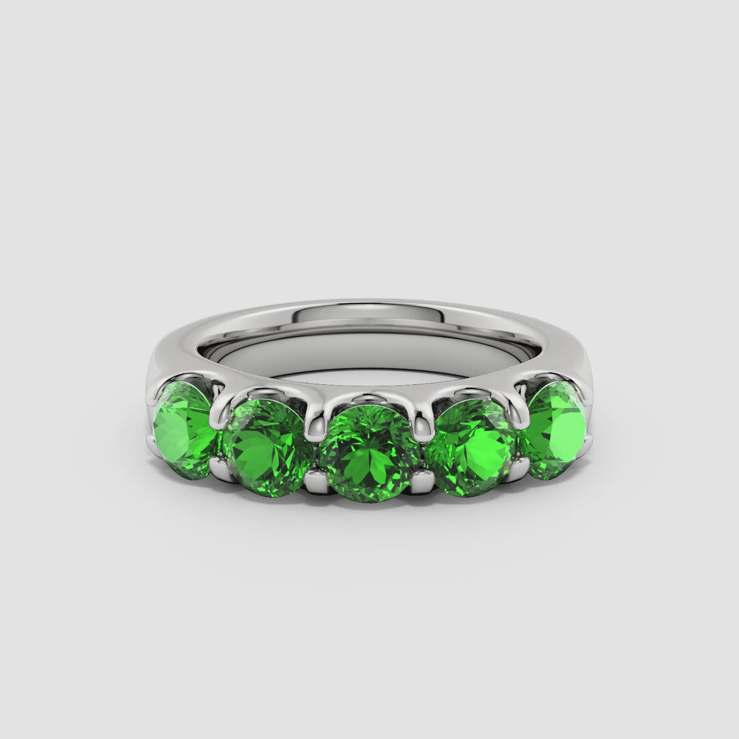 This captivating half eternity ring showcases the brilliance of five prong-set lab-grown emeralds arranged in a graceful sequence. Designed with timeless elegance, it reflects love and sophistication, making it a perfect choice for weddings, anniversaries, or meaningful celebrations. Expertly crafted in luxurious 14K Gold, this exquisite band embodies refined craftsmanship and everlasting beauty.