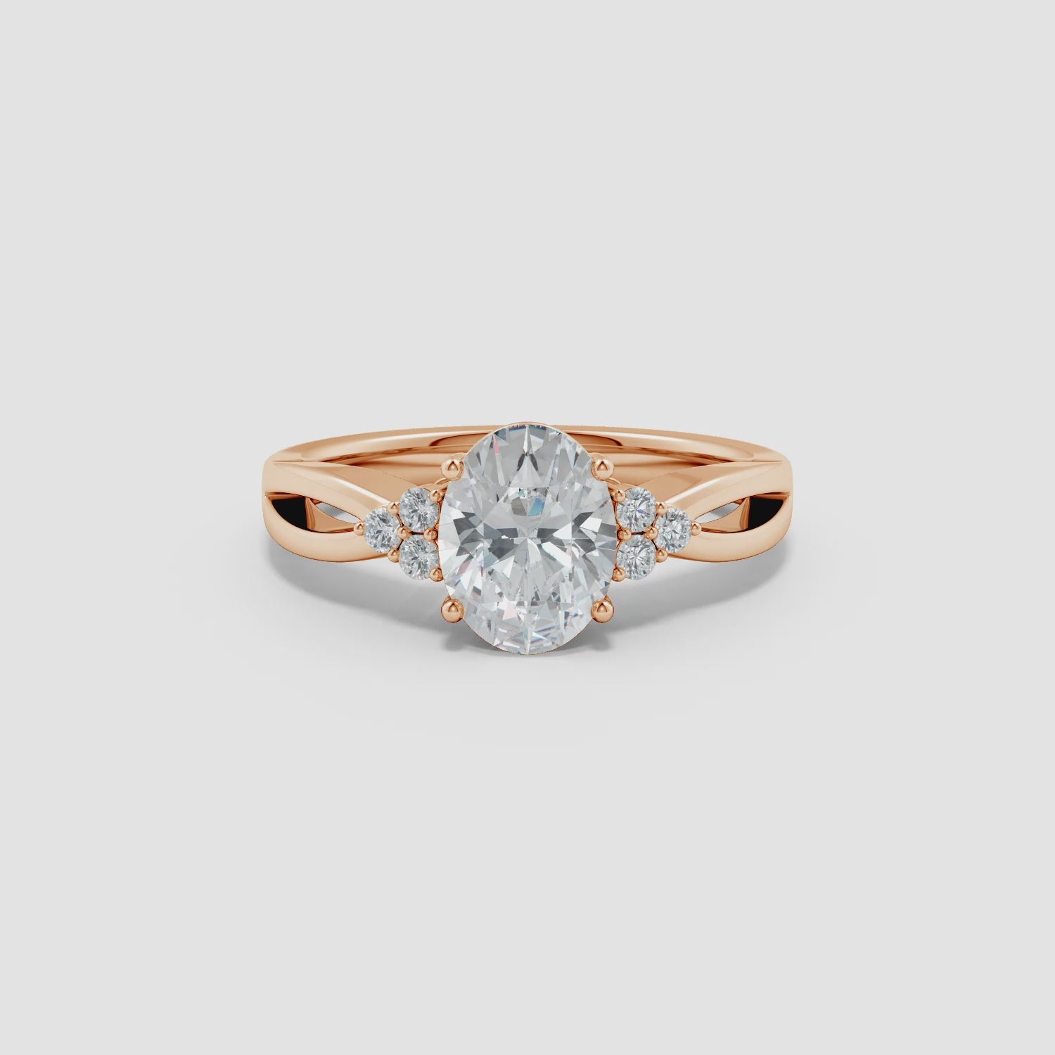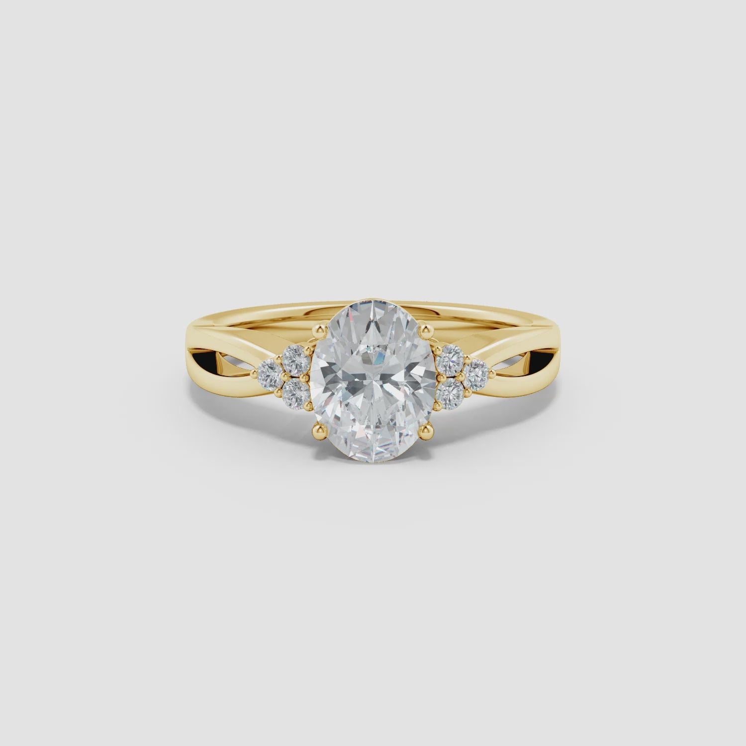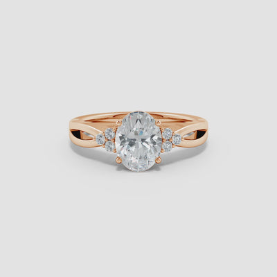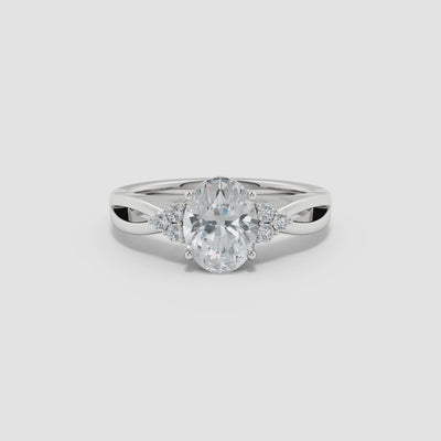 Oval and Round Diamond Split Shank Engagement Ring with Diamond Accents, Solitaire