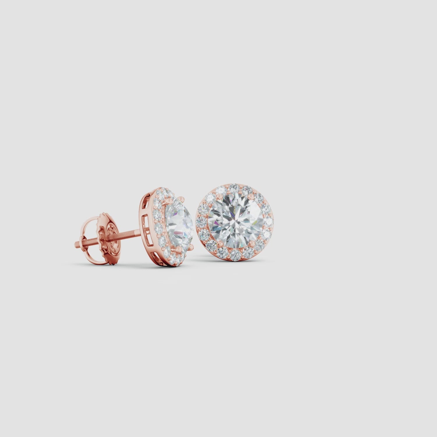 Vintage-Inspired Round Diamond Halo Stud Earrings, Lab Grown
