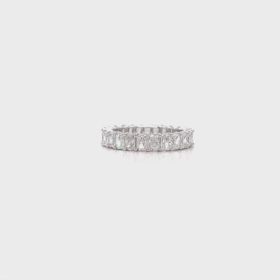 Radiate timeless brilliance with this Lab-Grown Long Radiant Diamond Eternity Band, expertly crafted in 14K White Gold. This luxurious ring features a seamless circle of long radiant-cut lab-grown diamonds totaling 3.16 carats, showcasing exceptional sparkle, symmetry, and refinement. Each diamond is graded F color and VS1 clarity, ensuring superior brilliance and a beautifully balanced glow.