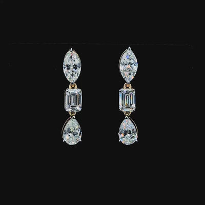 Multi-Shape Diamond Drop Earrings, 3.12 ct., 14K Yellow Gold, Lab Grown