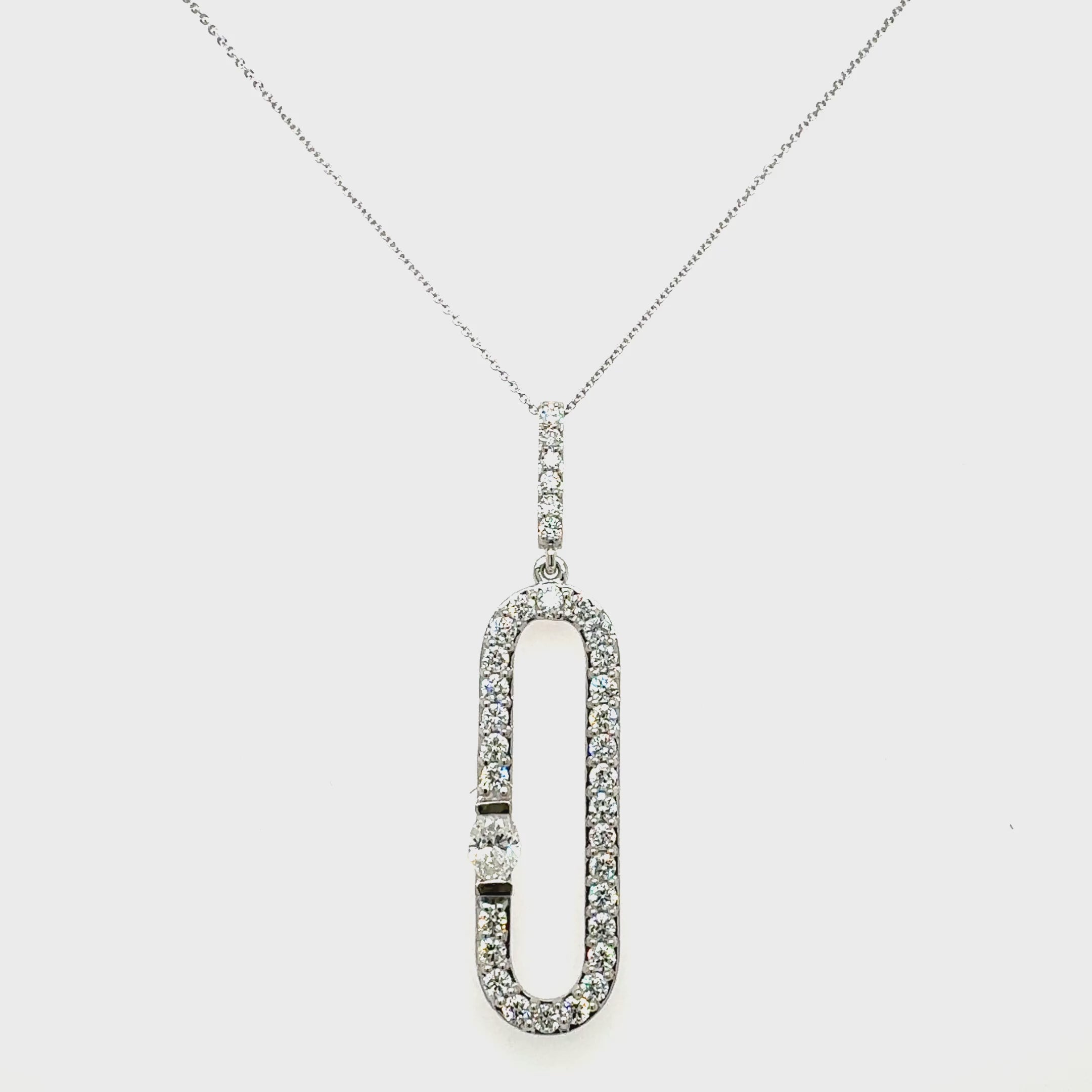 Suspended from a 16-inch white gold chain, this pendant showcases a harmonious blend of modern design and classic sophistication. The pairing of oval and round diamonds creates a graceful balance of brilliance and form, making it perfect for both elegant evenings and everyday refinement.