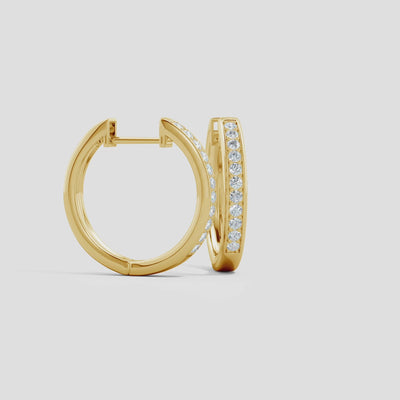Effortlessly elegant, these pave-set diamond hinged hoop earrings bring timeless sophistication to your collection. Each hoop shimmers with rows of meticulously set round lab-grown diamonds, creating a radiant display of sparkle from every angle. The smooth hinged clip closure ensures a secure and comfortable fit, making them perfect for everyday luxury or evening refinement. Expertly crafted in 14K Gold, these hoops elevate any look with classic brilliance and modern charm.