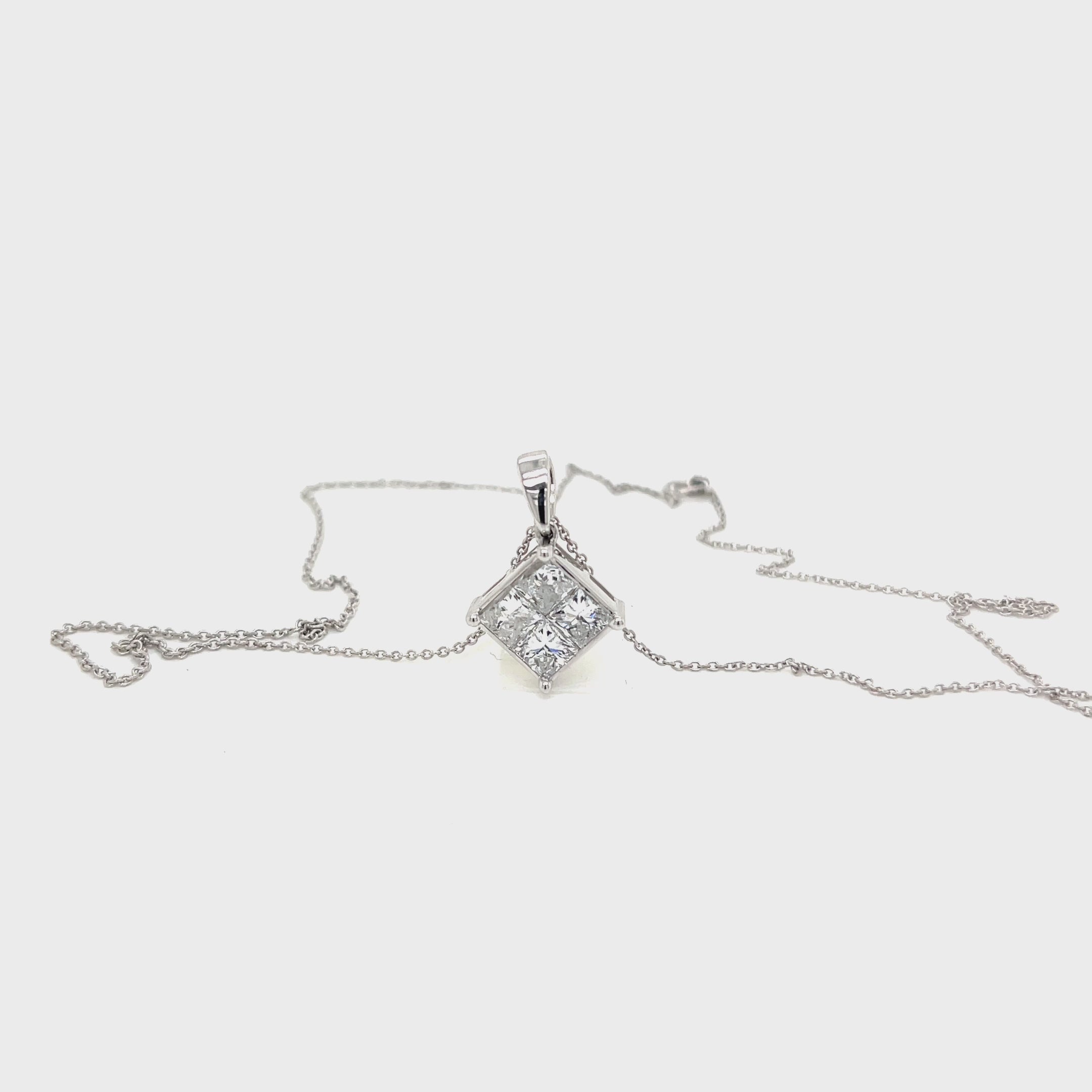Suspended from a 17-inch white gold chain, this pendant captures the essence of timeless luxury and refined minimalism. The pie-cut princess shape reflects light from multiple angles, offering the fire and radiance of a larger stone while maintaining an elegant and balanced aesthetic.