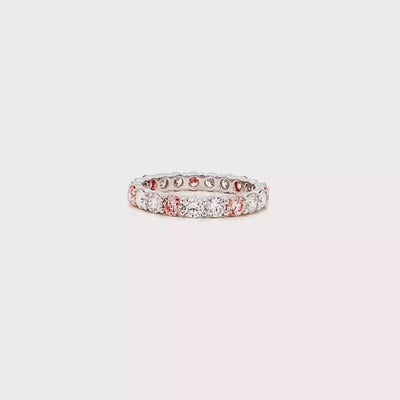 The eternity band design symbolizes unending love and commitment, making it an ideal choice for weddings, anniversaries, or special milestones. The sleek white gold setting beautifully enhances the delicate pink hue, offering a balance of modern luxury and graceful sophistication.