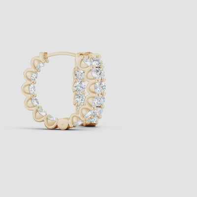 Classic yet captivating, these prong-set round diamond inside-out hoop earrings shimmer with brilliance from every angle. Each hoop is adorned with sparkling lab-grown diamonds both inside and outside, creating a continuous circle of light. Expertly secured in prong settings, the diamonds catch and reflect light beautifully for a luxurious finish. Crafted in 14K Gold with hinged clip closures, these hoops combine timeless style with modern sophistication for any occasion.