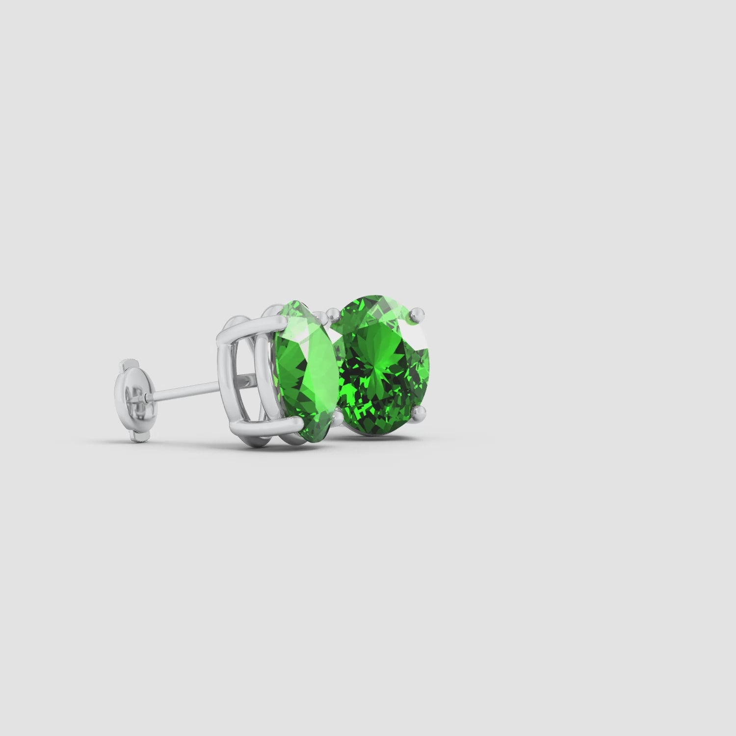 Elegant and timeless, these lab-grown prong-set solitaire oval emerald stud earrings radiate refined beauty with their captivating green hue. Each earring showcases a vivid oval lab-grown emerald, securely held in a classic prong setting that enhances its brilliance. Expertly crafted in your choice of White Gold, Yellow Gold, Rose Gold, or Platinum, these 14K studs embody simplicity, sophistication, and sustainable luxury—perfect for everyday wear or special occasions.