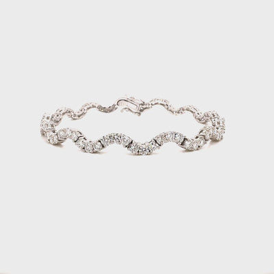Experience modern sophistication with the Wave Lab-Grown Diamond Tennis Bracelet, beautifully crafted in 14K White Gold. This elegant design showcases a total of 4.44 carats of round brilliant lab-grown diamonds, perfectly matched for exceptional sparkle and brilliance. Each diamond is graded F-G color and VS2 clarity, ensuring a flawless harmony of purity and light reflection.