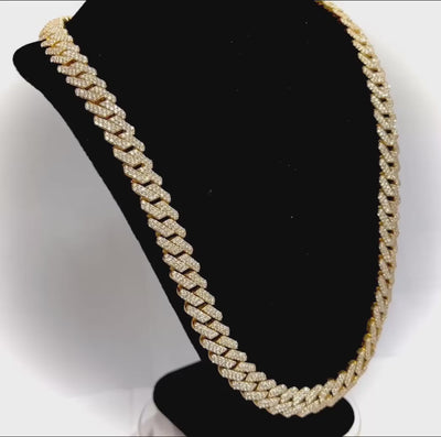 The Cuban link design radiates power and sophistication, elevated by expertly set diamonds that create a seamless river of light. Measuring 22 inches in length, this necklace offers a bold and comfortable fit, perfect for both men and women who appreciate statement luxury.