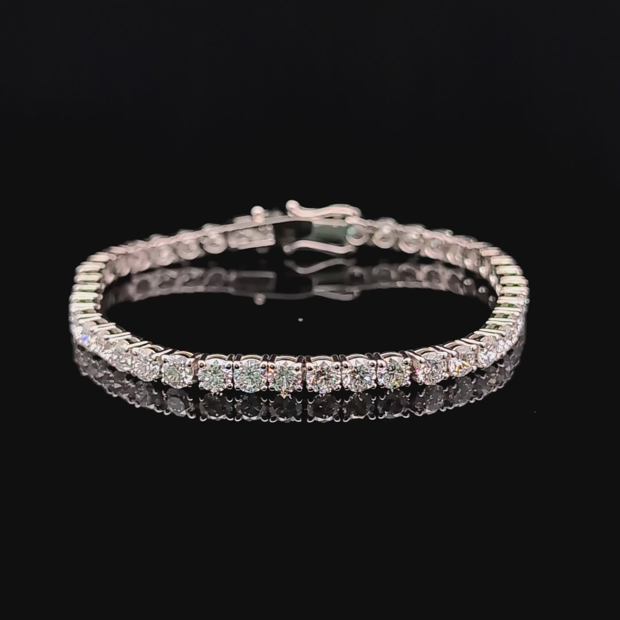 Exude timeless luxury with this breathtaking Lab-Grown Diamond Tennis Bracelet, impeccably crafted in 14K White Gold. Featuring a dazzling 10.71 carats of round-cut lab-grown diamonds, this bracelet offers unparalleled brilliance, purity, and sophistication. Each diamond is expertly graded E-F color and VS2 clarity, ensuring unmatched sparkle and clarity for a truly radiant finish.