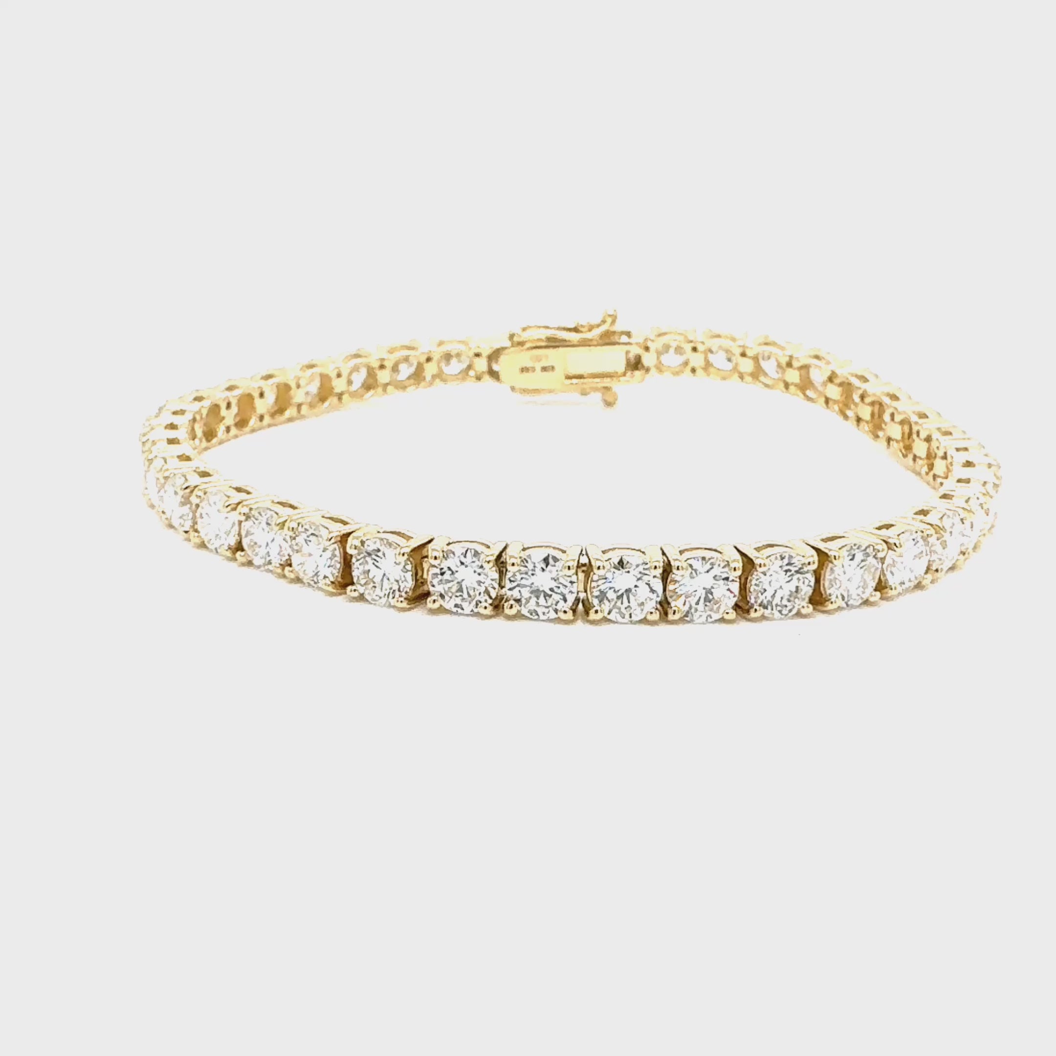 Round Diamond Tennis Bracelet, 11.07 ct., 14K Yellow Gold, Lab Grown
