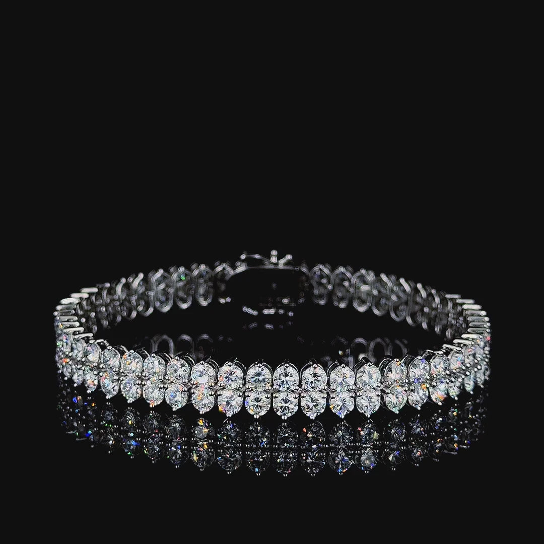 Radiate brilliance with this Lab-Grown 2-Row Diamond Tennis Bracelet, a breathtaking piece of fine jewelry crafted in 14K White Gold. This luxurious bracelet features two rows of round-cut lab-grown diamonds, perfectly matched for brilliance and symmetry. With a total diamond weight of 12.52 carats, each stone displays stunning FG color and VS clarity, creating an exquisite display of sparkle and refinement.