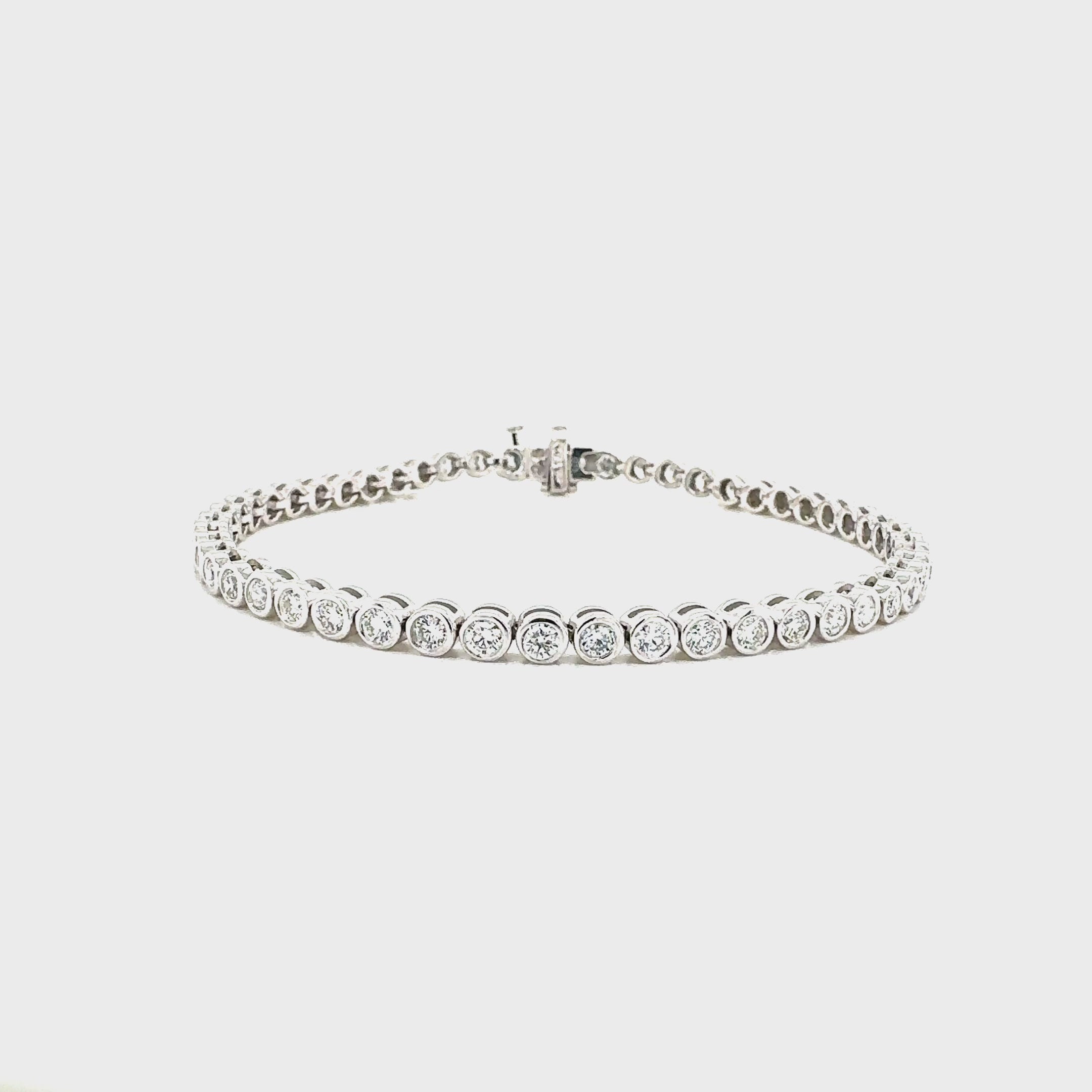 The sleek and polished 14K white gold setting enhances each diamond’s luminosity, forming a seamless band of radiance around your wrist. Perfect for both everyday sophistication and special occasions, this lab-grown diamond tennis bracelet epitomizes sustainable elegance, timeless beauty, and expert craftsmanship — a luxurious essential for the modern jewelry lover.