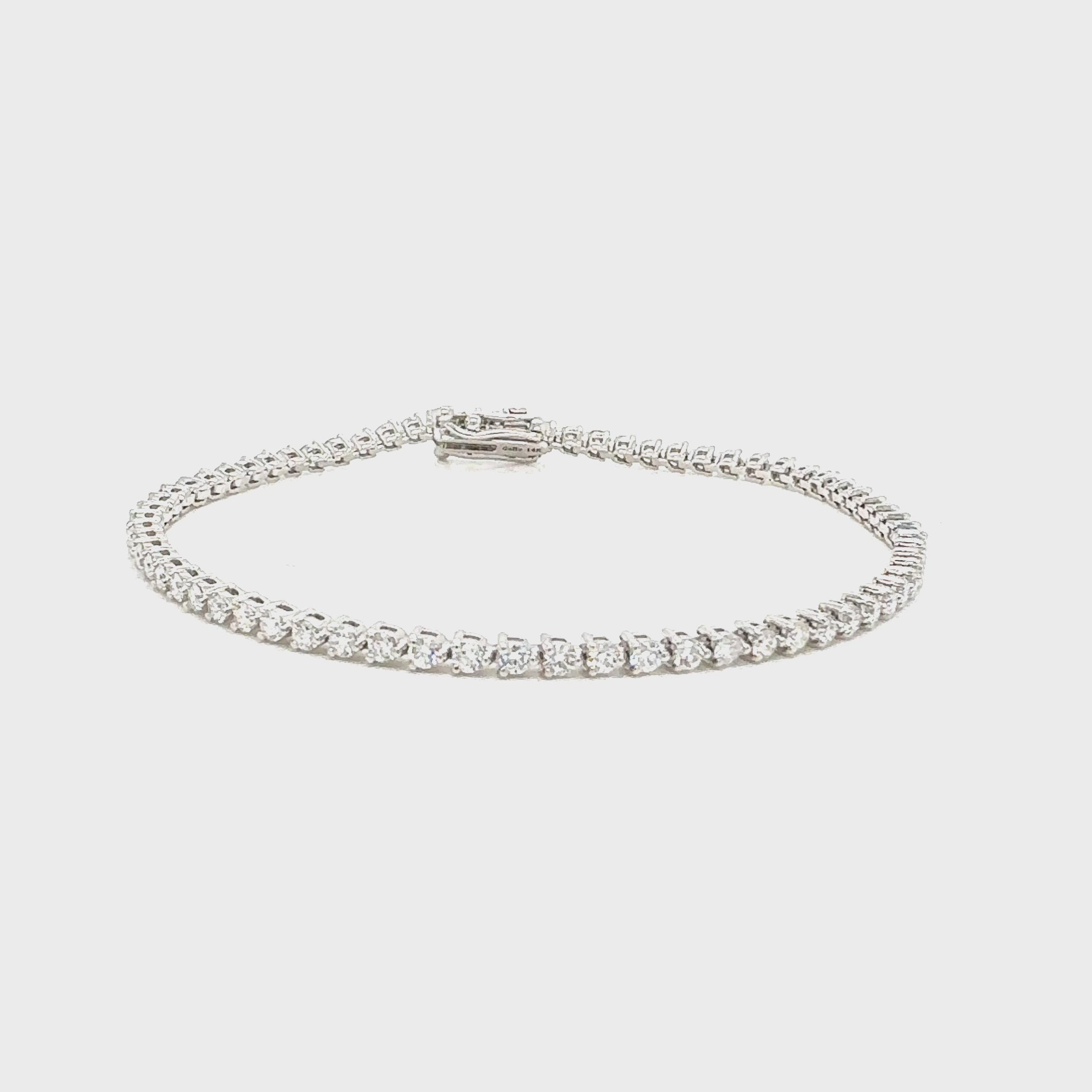 Unveil exceptional radiance with this Lab-Grown Diamond Tennis Bracelet, meticulously designed in 14K White Gold. Featuring a stunning 2 carats of Round-cut lab-grown diamonds, each stone showcases F-G color and VS2 clarity, offering unmatched brilliance and ethical beauty.