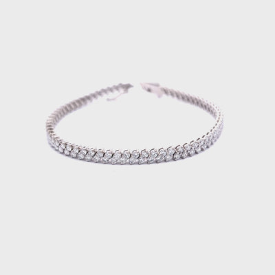 Make an unforgettable statement with this Lab-Grown 2-Row Diamond Tennis Bracelet, expertly crafted in 14K White Gold. Designed to embody timeless elegance and modern sustainability, this exquisite bracelet showcases round-cut lab-grown diamonds with a total carat weight of 4.57 CT, each displaying stunning EF color and VS2 clarity.