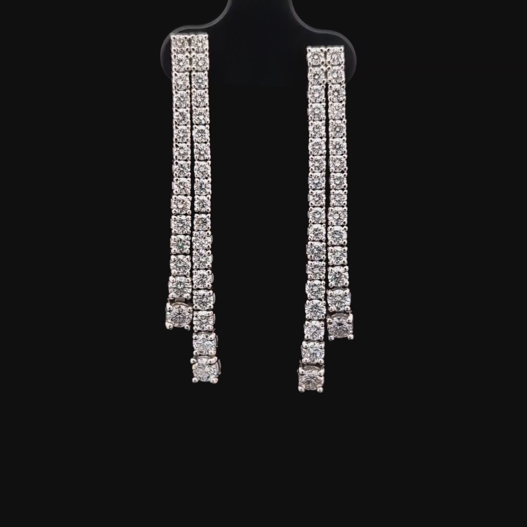The two-row tennis design brings a modern yet classic appeal, making these earrings ideal for both everyday elegance and special occasions.