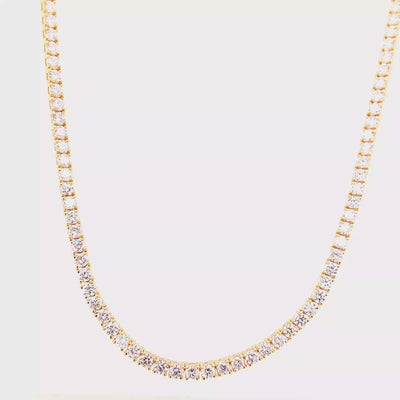 This Lab-Grown Diamond Tennis Necklace, meticulously designed in 14K Yellow Gold. Featuring a stunning 13.46 carats of Round-cut lab-grown diamonds, each stone showcases F-G color and VS2 clarity, offering unmatched brilliance and ethical beauty.