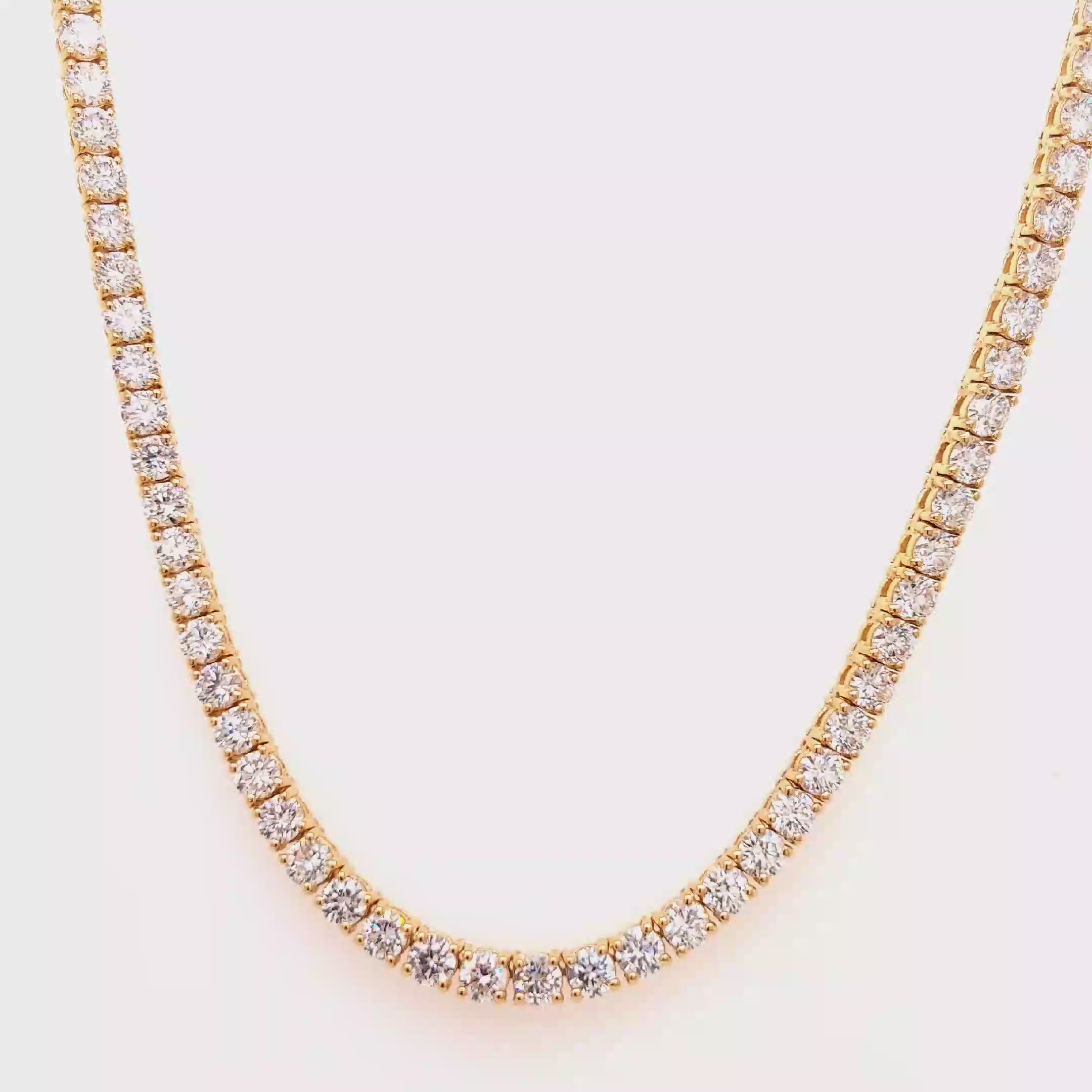 Round Diamond Tennis Necklace, 15.55 ct., 14K Yellow Gold, Lab Grown