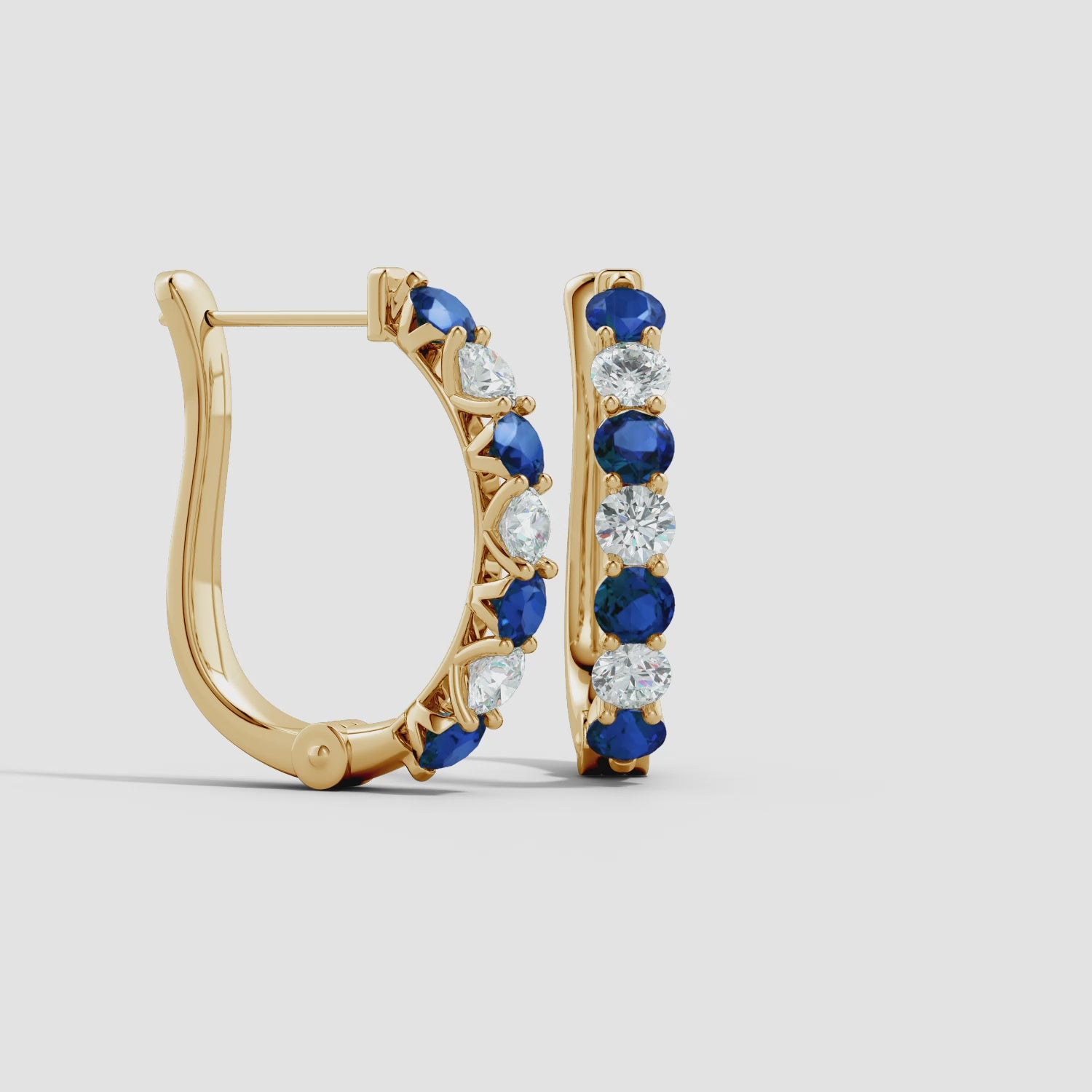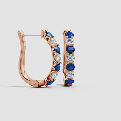 These exquisite huggie hoop earrings beautifully combine alternating prong-set lab-grown sapphires and lab-grown diamonds, creating a mesmerizing balance of sparkle and sophistication. Designed with precision and elegance, they offer a radiant brilliance that complements both casual and formal looks. Expertly crafted in luxurious 14K Gold, these hoops feature secure hinged clip closures for comfortable, all-day wear—perfect for those who appreciate timeless style with a modern touch.