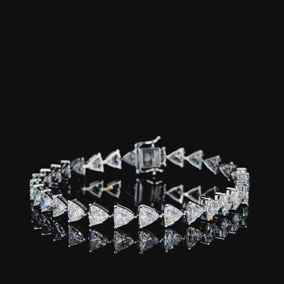 Make a striking statement with this Lab-Grown East-West Tennis Bracelet, masterfully designed in 14K White Gold (14KW). This exquisite bracelet showcases a captivating row of trillion-cut lab-grown CVD diamonds with a total carat weight of 11.92, offering an elegant balance of brilliance and modern artistry. Each diamond is carefully graded F-G color and VS clarity, ensuring extraordinary sparkle, precision, and luxury.